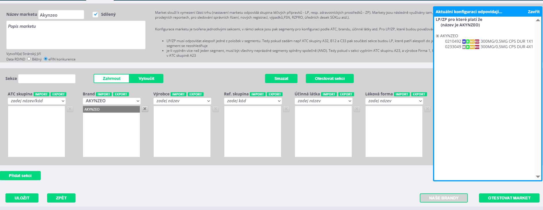 V části Nastavení uživatel definuje trh (Market), který odpovídá jeho produktovému portfoliu. Report se tím zpřesní a ukáže pouze to, co je pro návštěvu skutečně relevantní.
