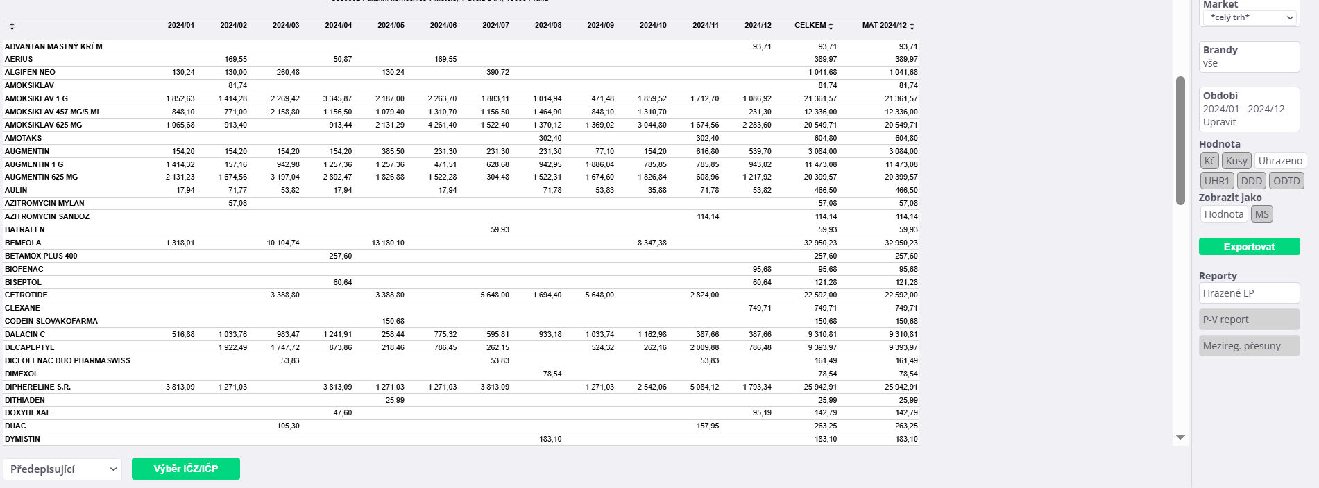- jaká je spotřeba daného přípravku v konkrétním zařízení u konkrétního lékaře v počtech balení, v celkových hodnotách úhrad