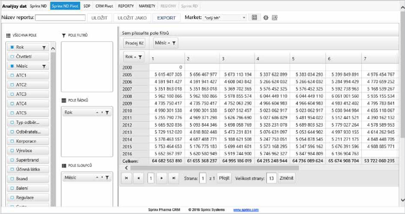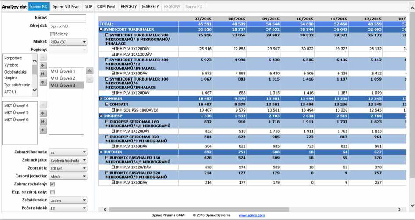 Služba Sprinx Pharma Národní data umožňuje získat prodejní informace o léčivých přípravcích uváděných na trh v České republice. Data pocházejí z hlášení DIS 13, podle kterého jsou subjekty oprávněné k distribuci léčivých přípravků povinny hlásit dodávky distribuovaných humánních léčivých přípravků.