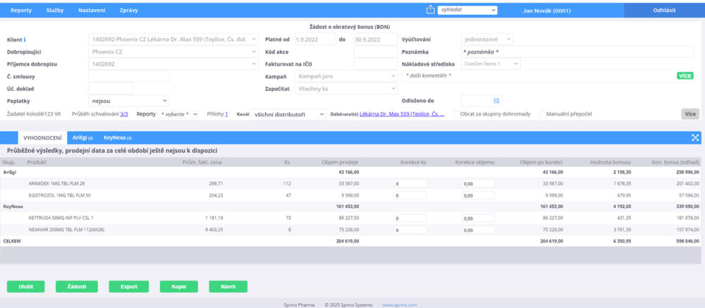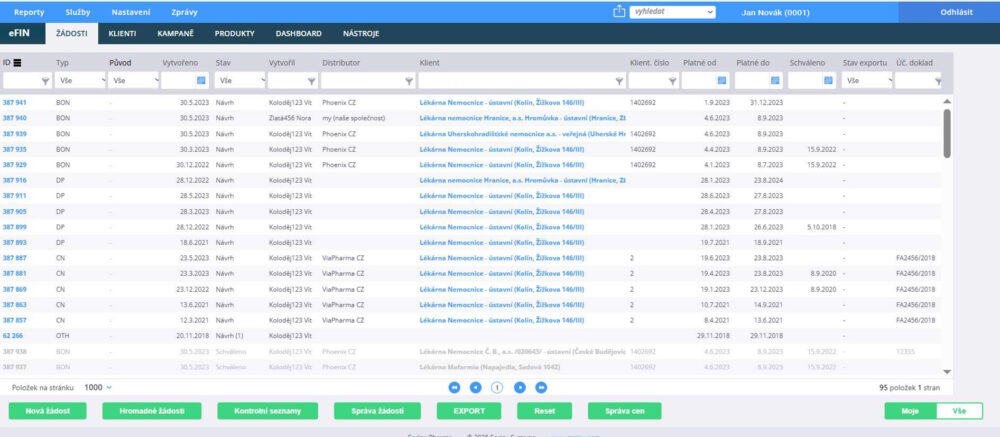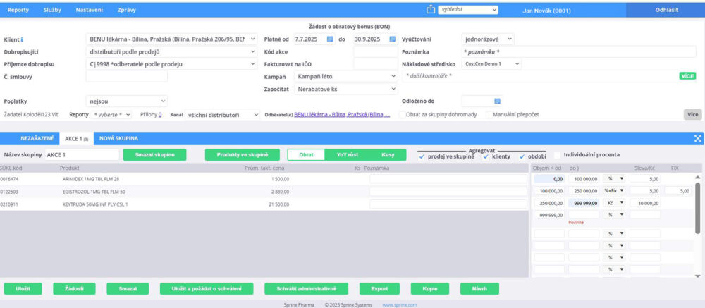 Správa slev, bonusů a kompenzací ve farmaceutickém prostředí bývá složitá a časově náročná. Právě proto jsme ve Sprinx Pharma vyvinuli E–FINANCE – cloudovou aplikaci, která přináší přehled, efektivitu a bezpečnost do každodenní práce s komerčními akcemi.