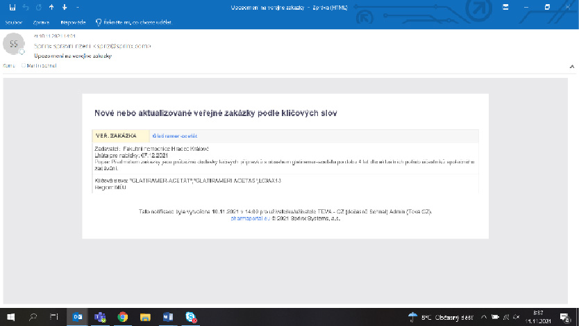 V případě použití aplikace Sprinx Pharma Monitoring veřejných zakázek: